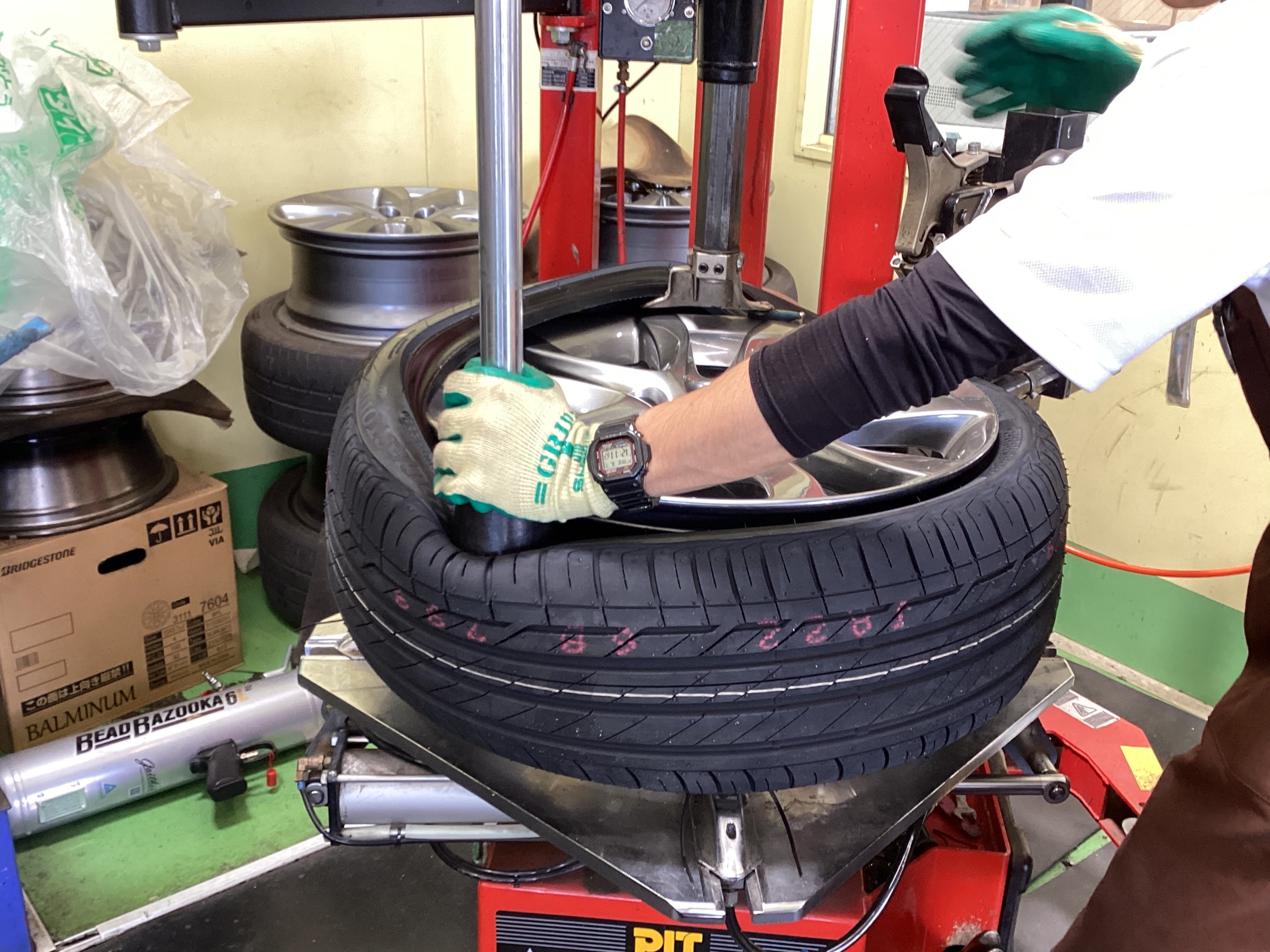 タイヤをホイールから取り外して、チェンジャーにセット!