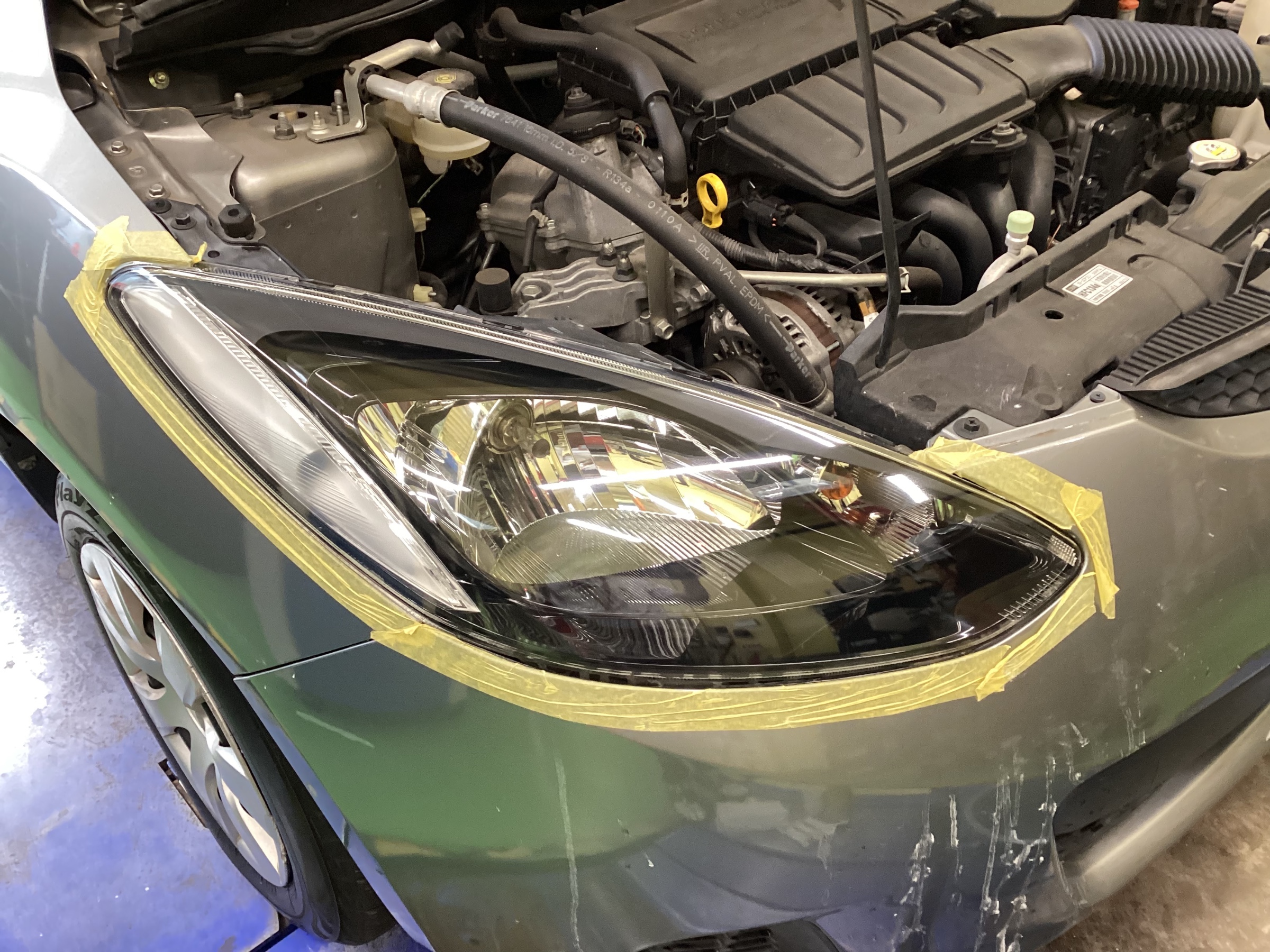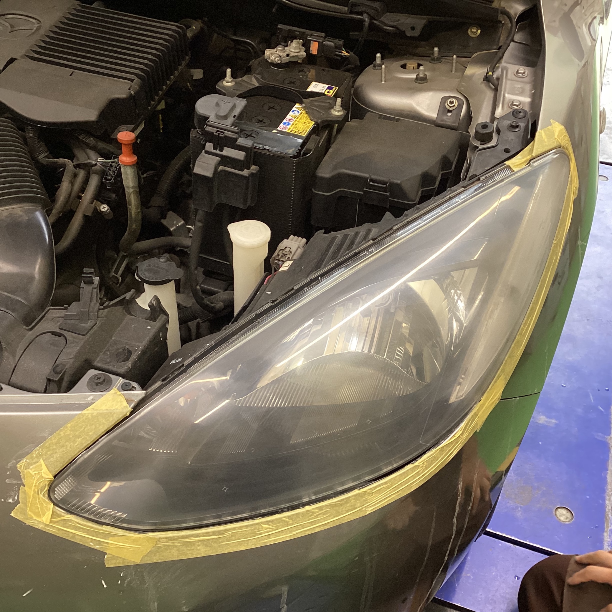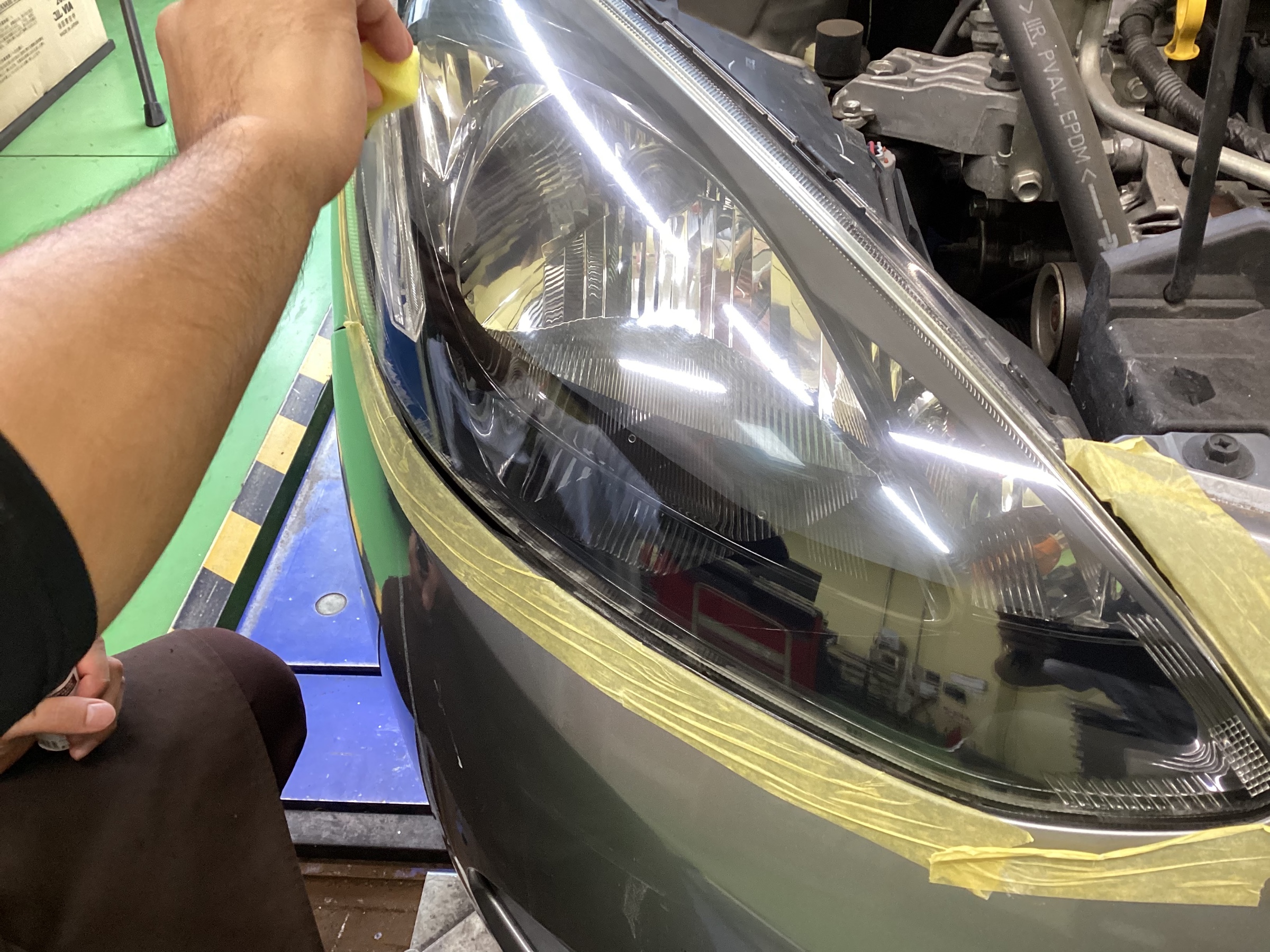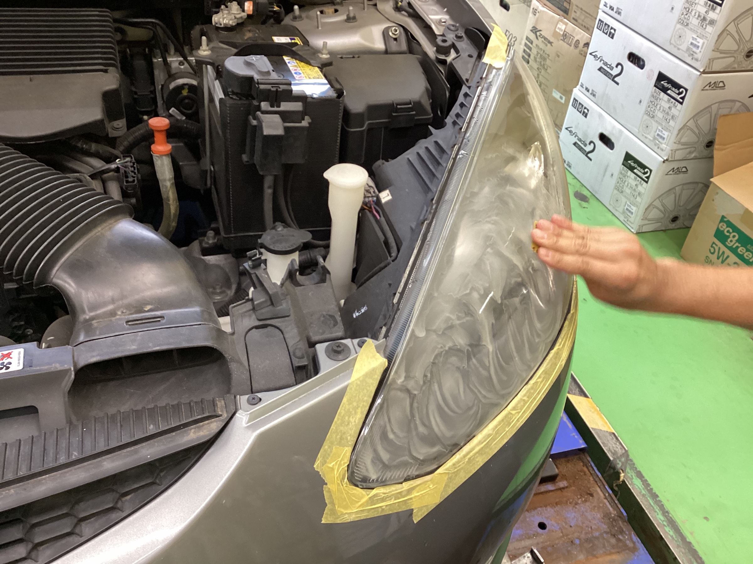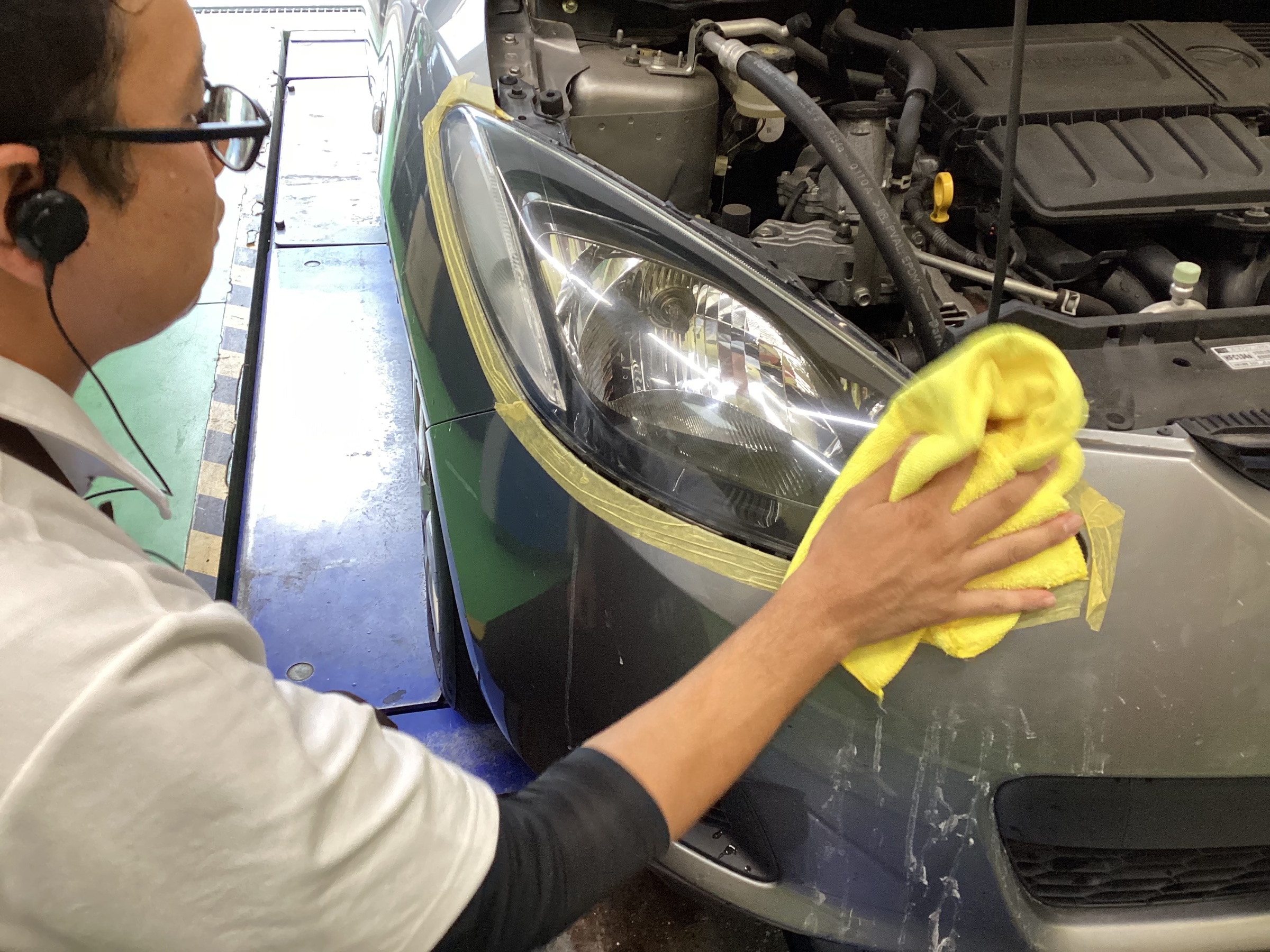 ヘッドライトの汚れを落としていきます(ง ˙˘˙ )ว