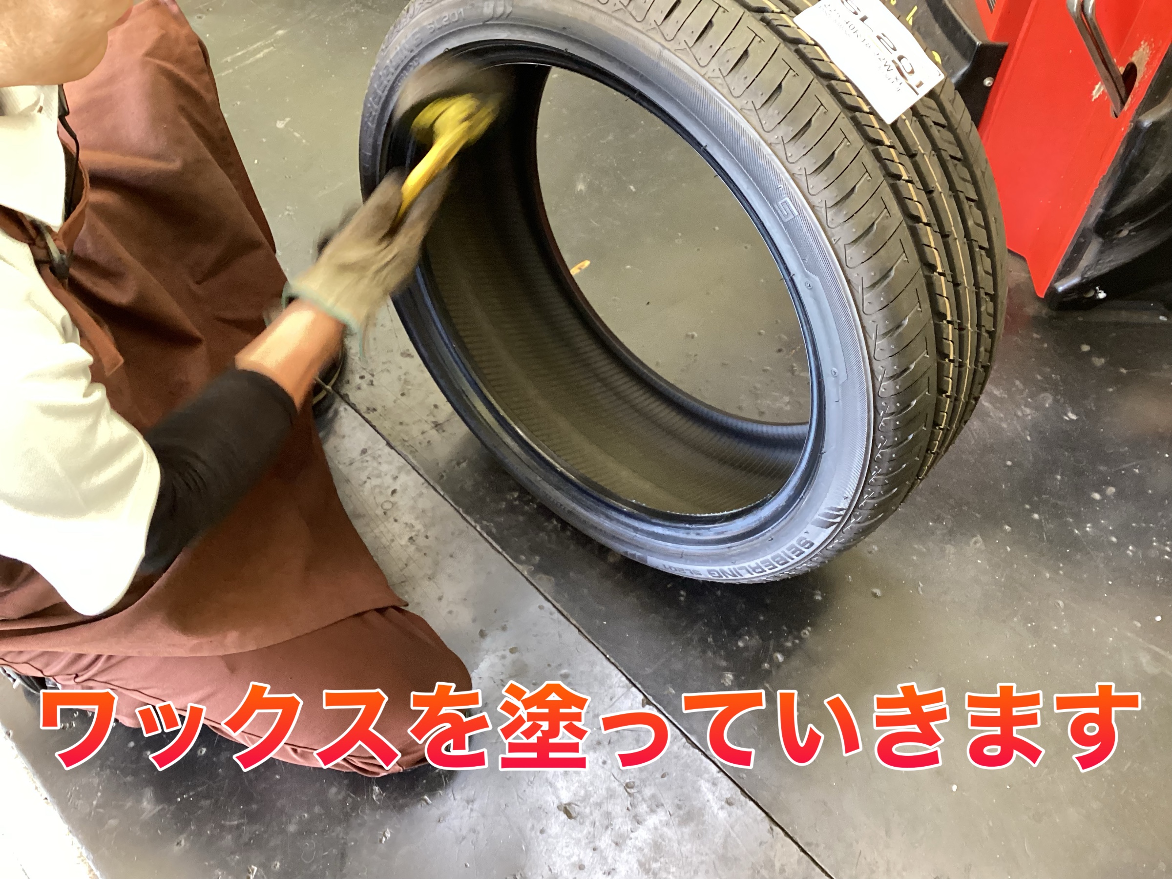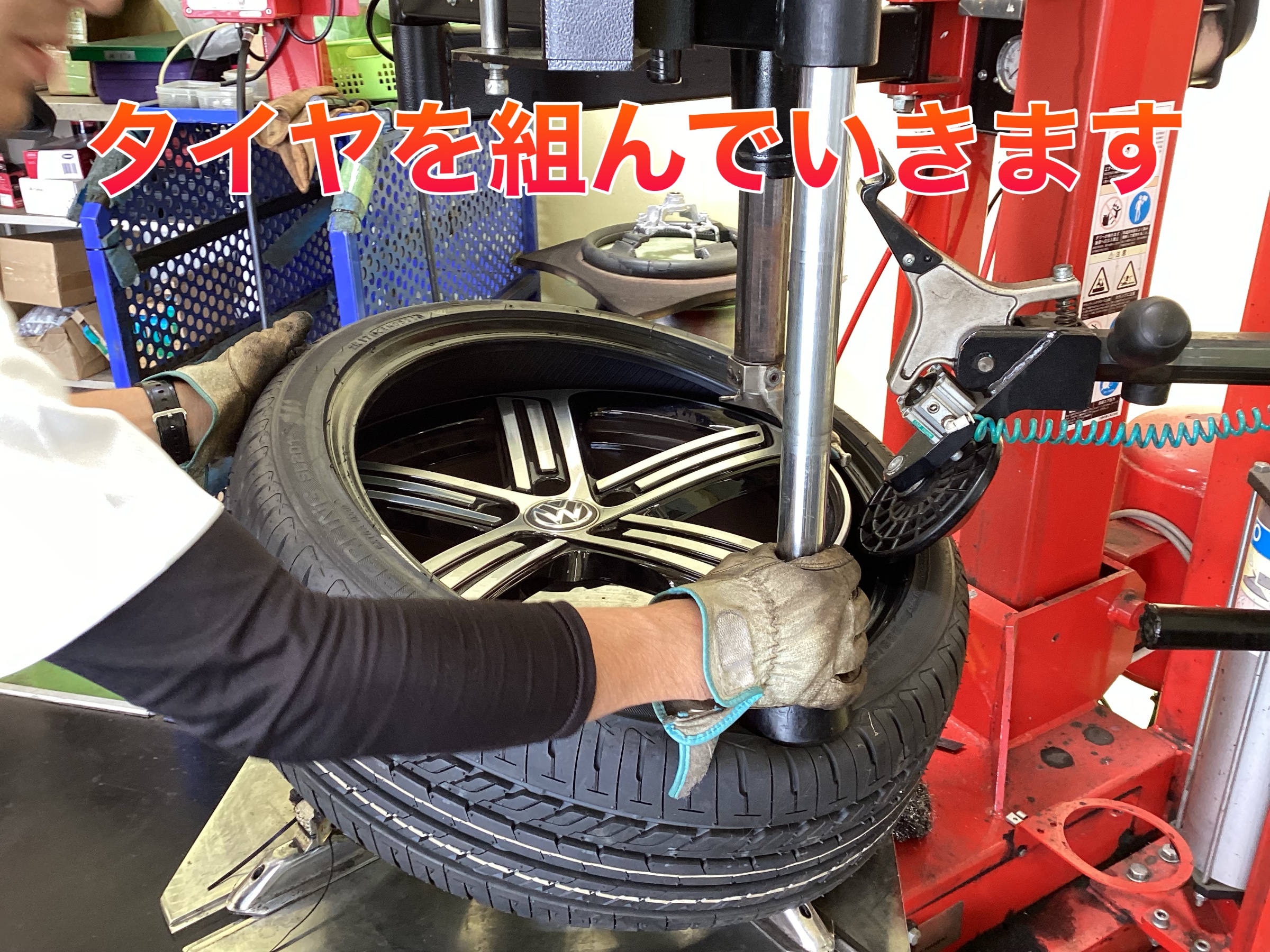 ホイールに新しいタイヤをとりつけていきます≫≫