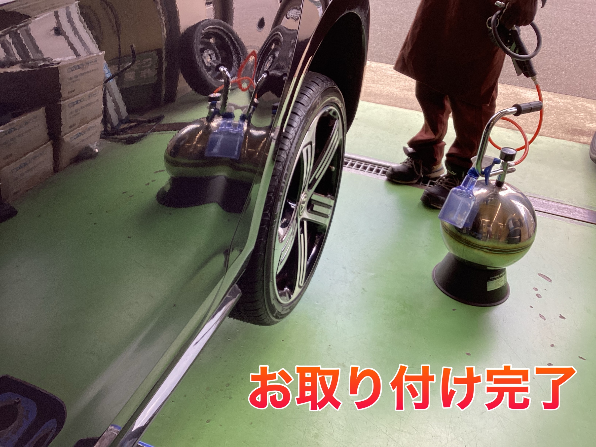 ワックスをかけ、ホイールをふきあげ、ナットの締め付け作業をし