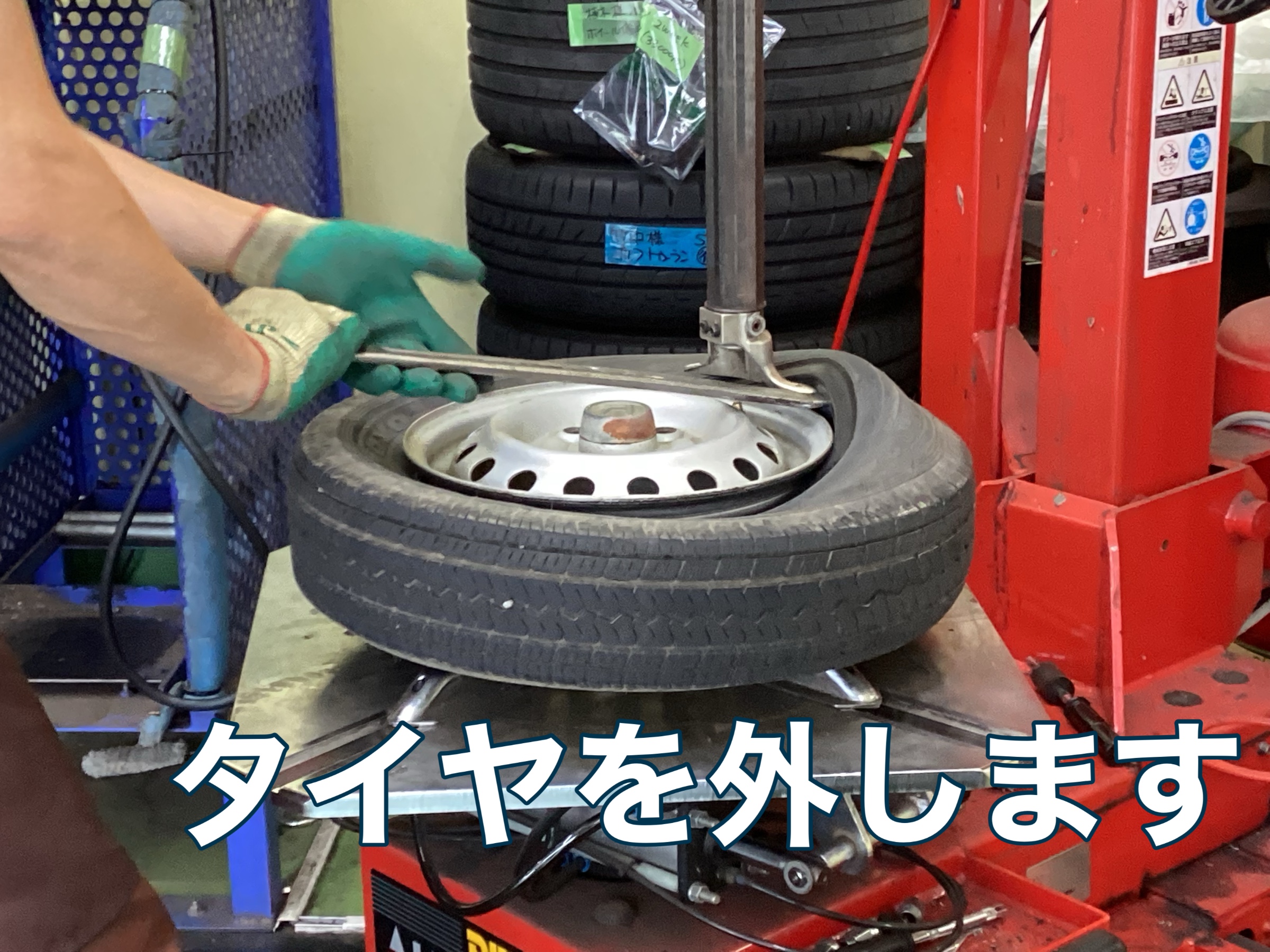 まずは、古いタイヤを取り外していきます(๑•᎑•๑)