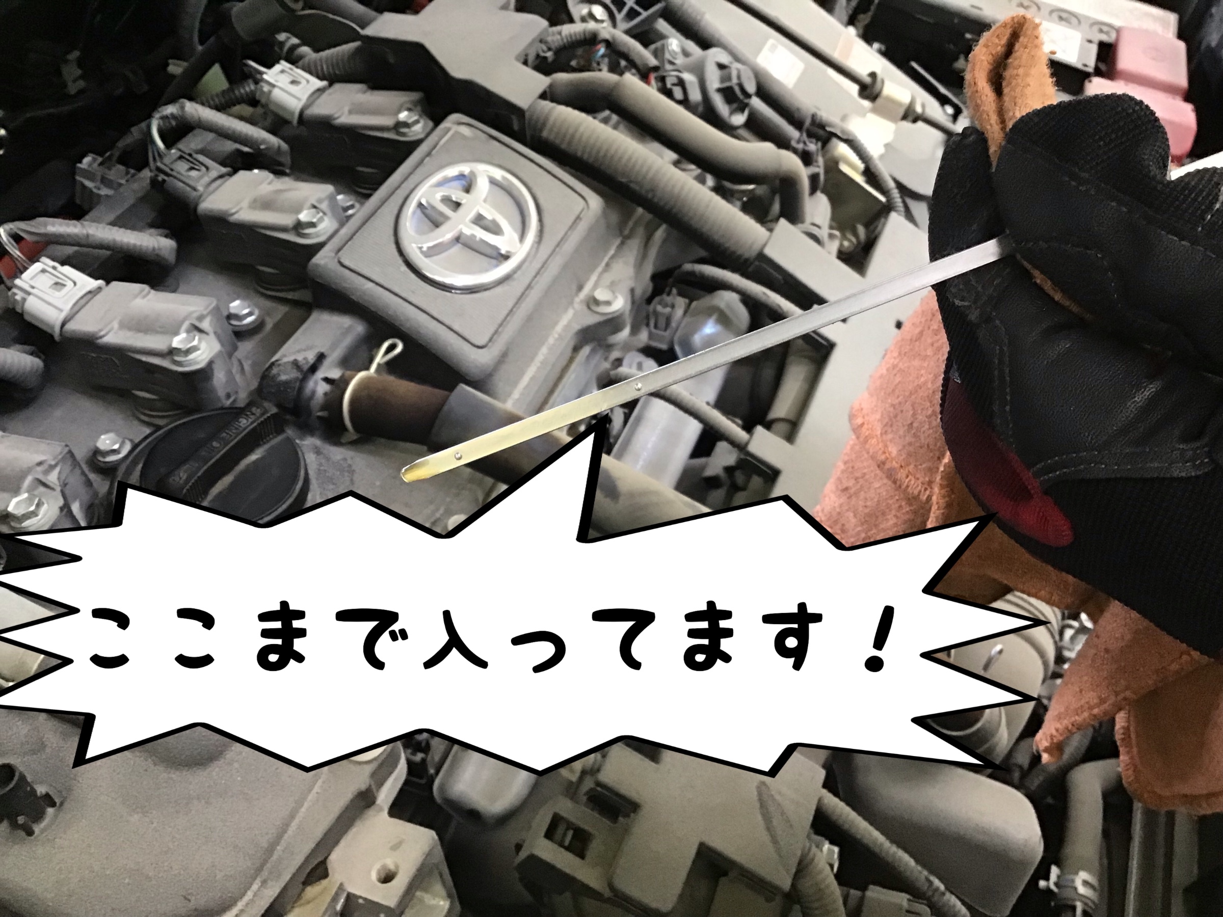 新油を入れたらオイルゲージで油量チェックです。