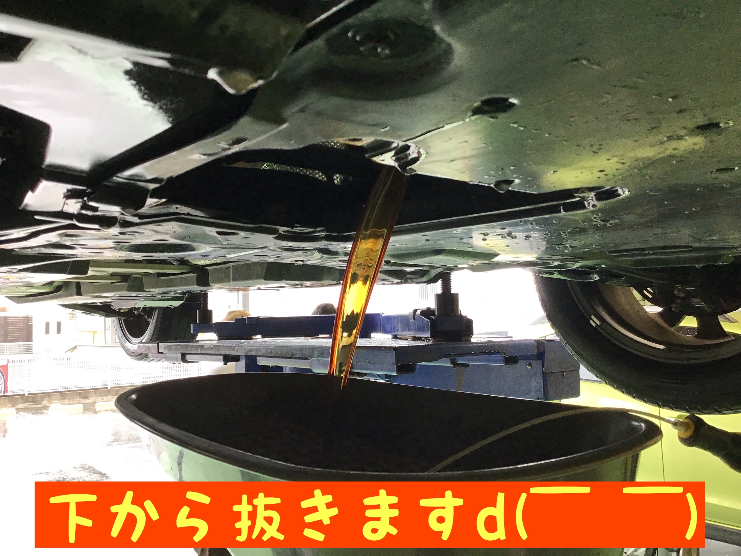 今回はオイルとエレメント交換なので下からオイルを抜きます!