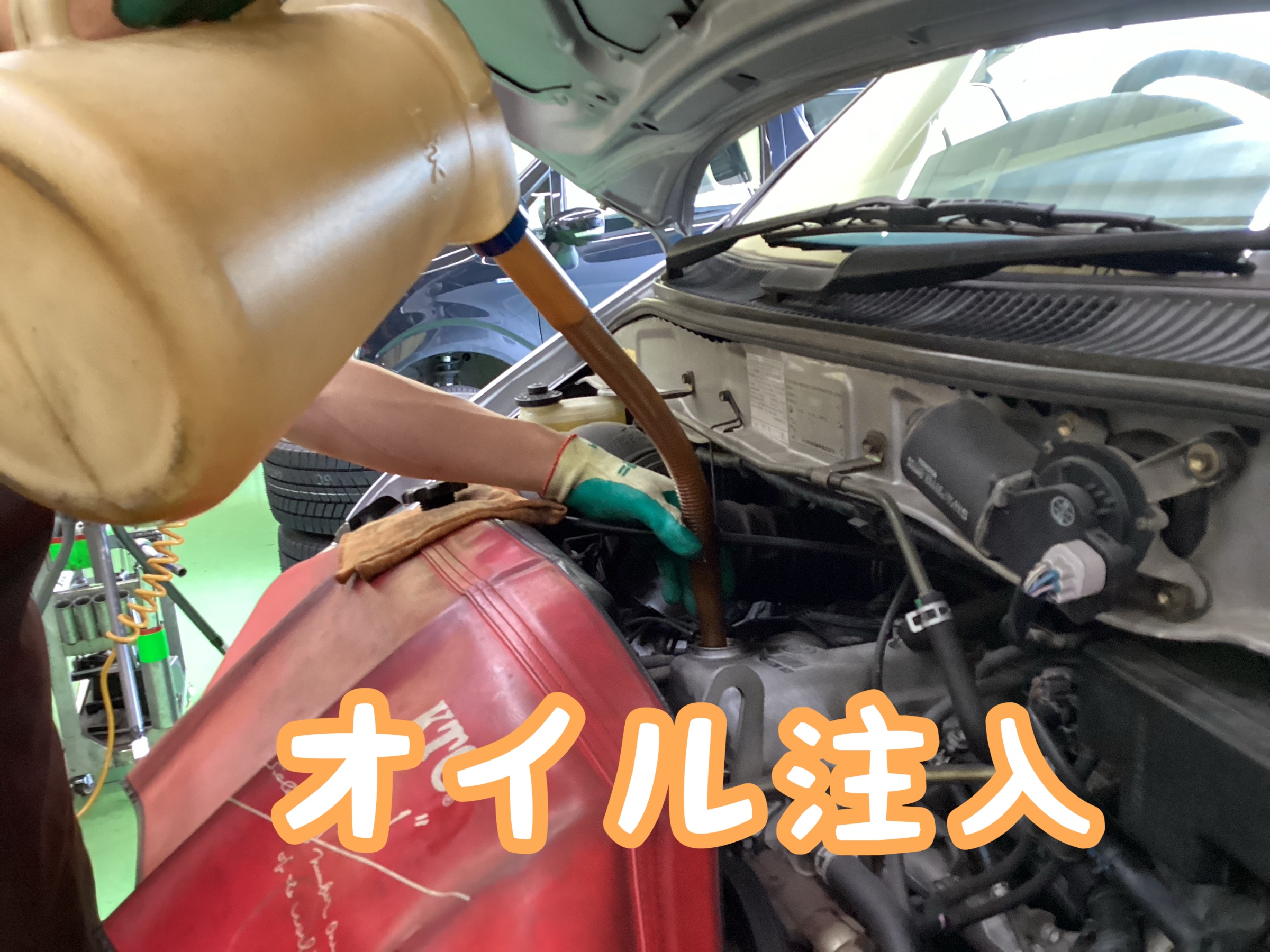 フィラーキャップを外し、新油を注いでいきます!
