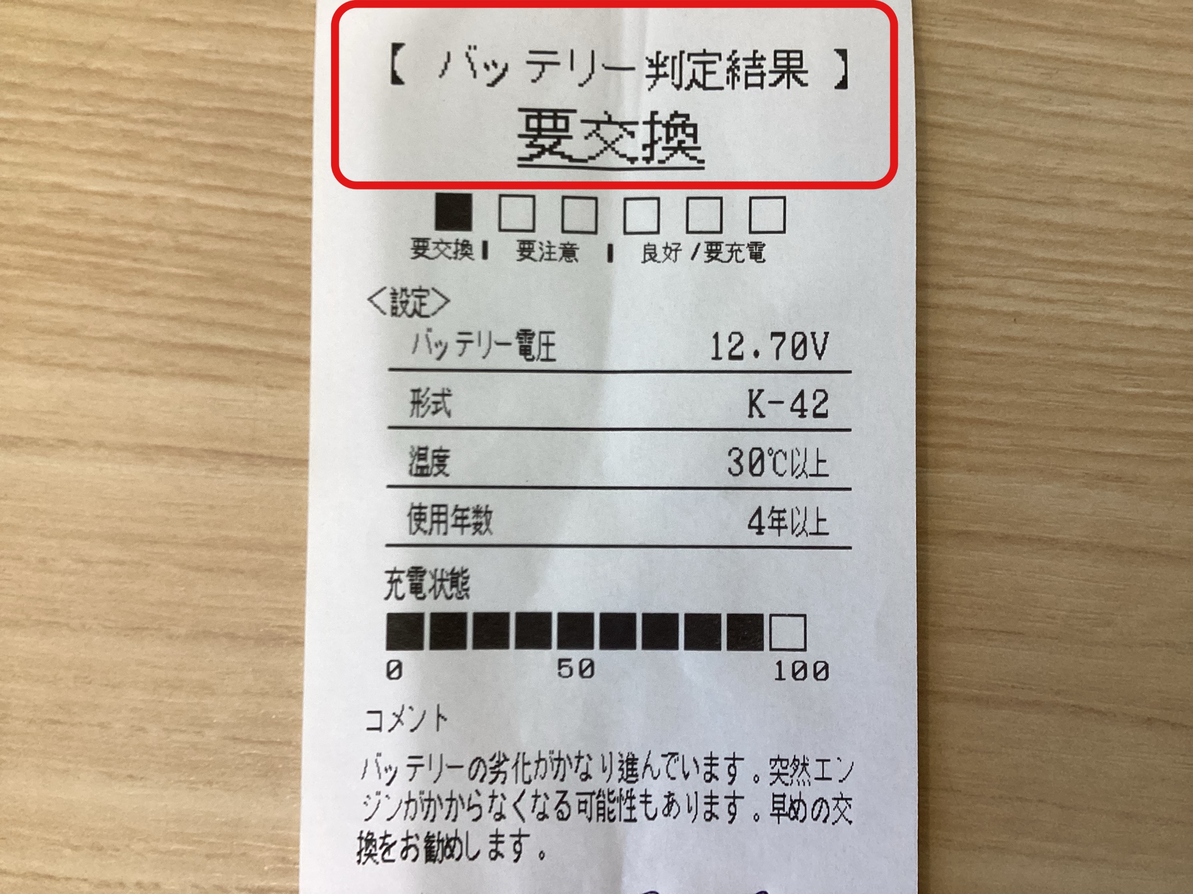 テスターを使ってチェックしたところ、劣化が進んでしまっていたので
