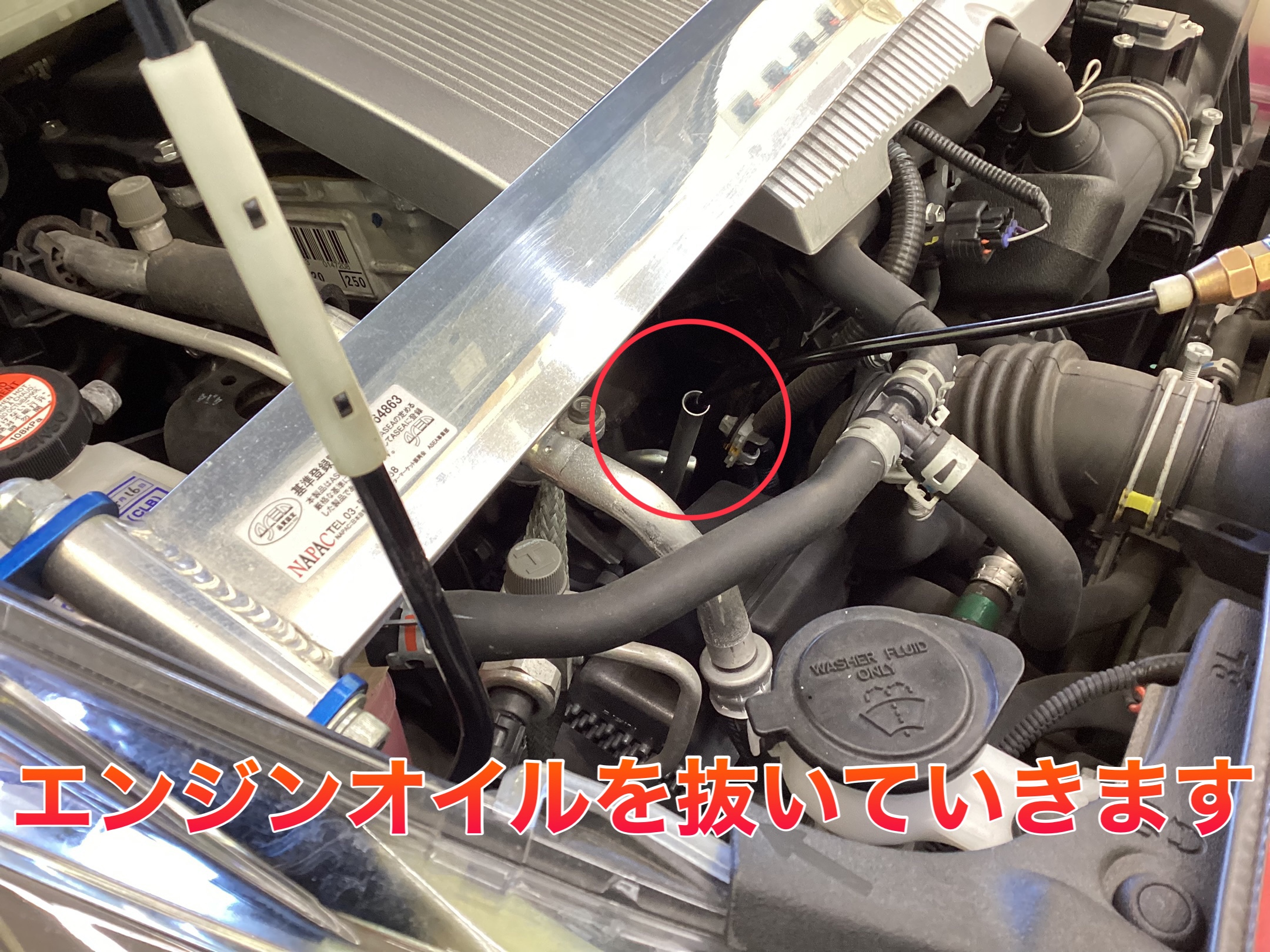 まずは、エンジンオイルを抜いていきます≫≫