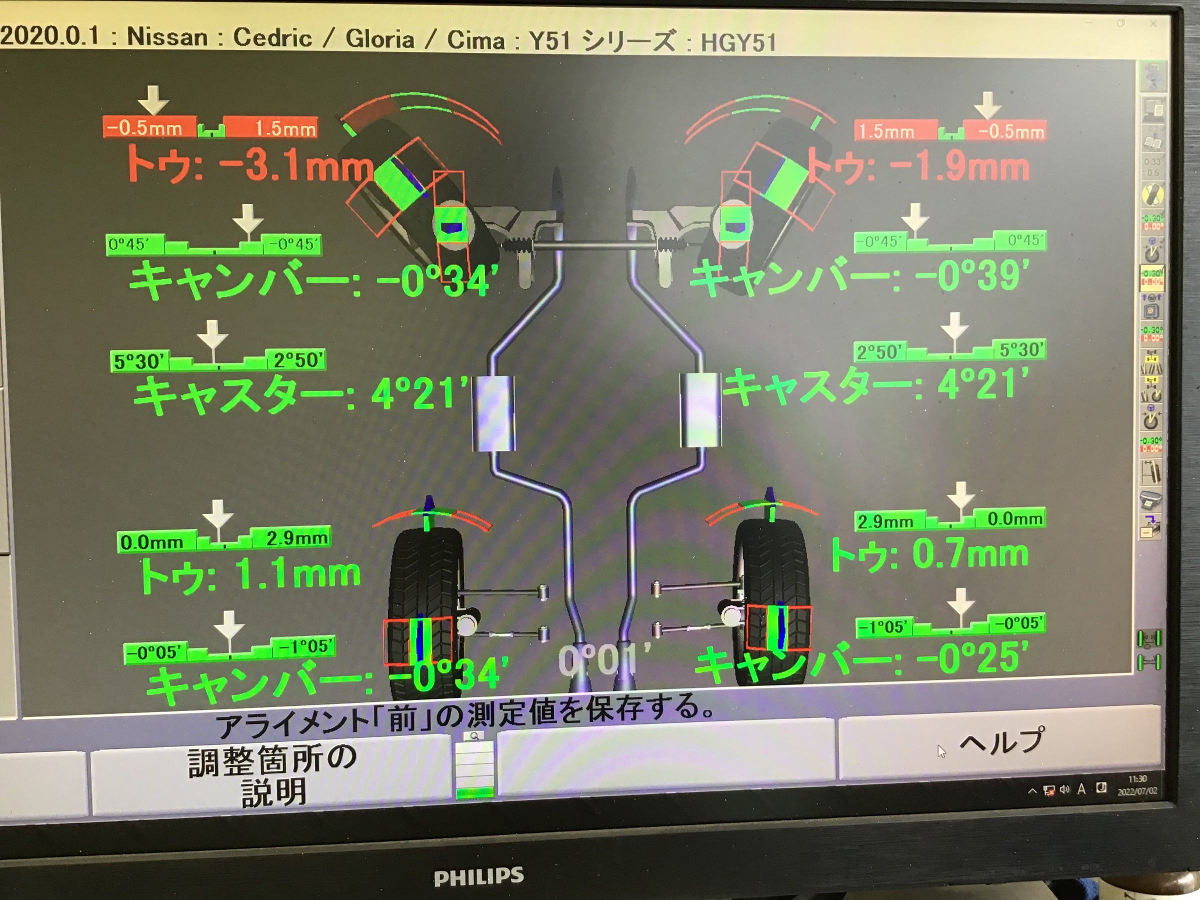 調整させていただききれいに規定値に直すことができました!!