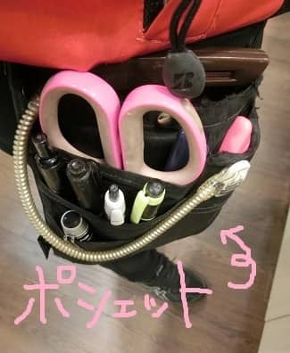 私は、よく使う文房具などをポシェットに入れて提げています。