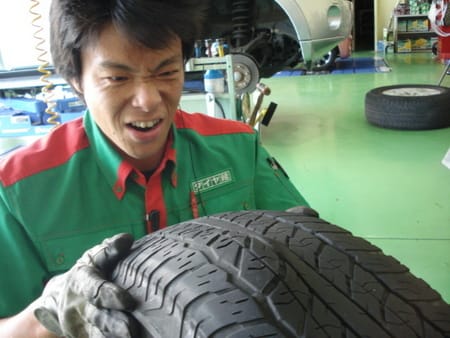本日タイヤ交換のパジェロが…何と…1本がタイヤの形が変形している!!