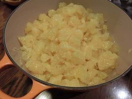 この後、皮は何度か茹でこぼし、実は煮詰めていくそうです。