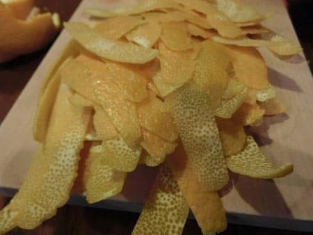 皮にある白いわたの部分が苦味を出してしまうので、その部分をカットしているんです。