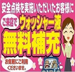 安全点検実施で、ウォッシャー液無料補充します!