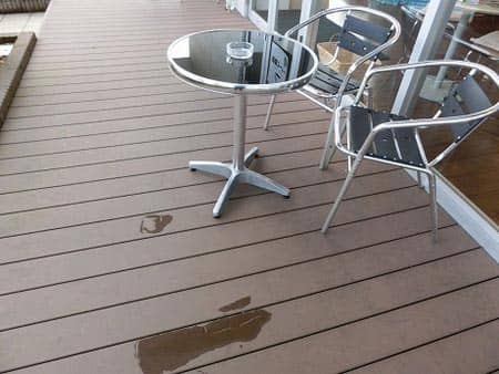 この冬に入って、このウッドデッキで凍っているのを初めて見たもので、