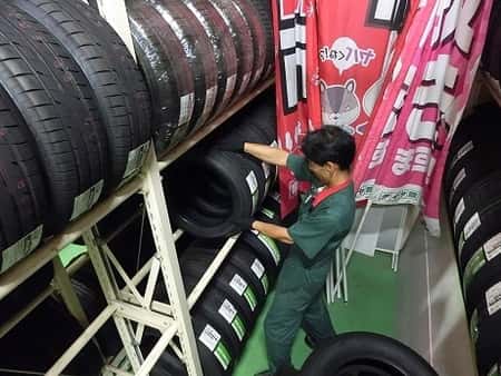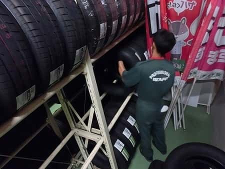 連日、大量のスタッドレスタイヤやホイールが入荷するため、