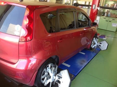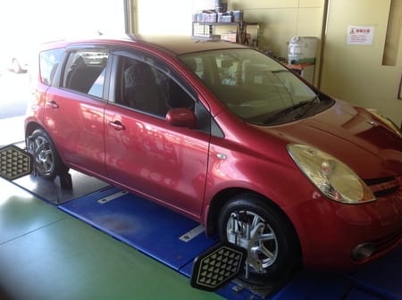 本日は日産のコンパクトカー ノートにアライメント調整+タイヤ交換の実施です。