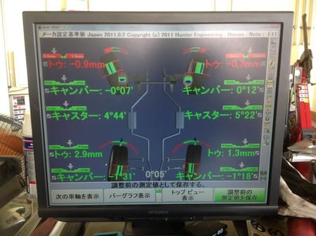 さらにタイヤ長持ちのアライメント調整の実施です。