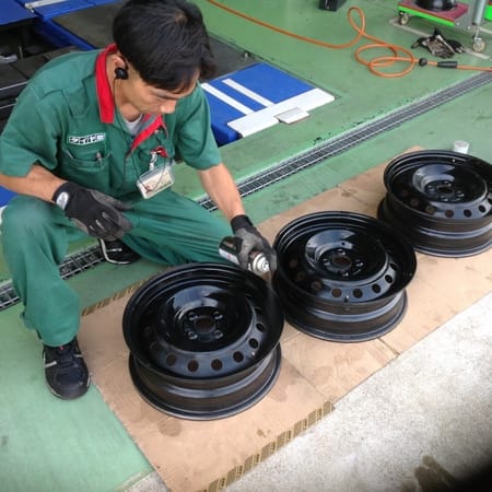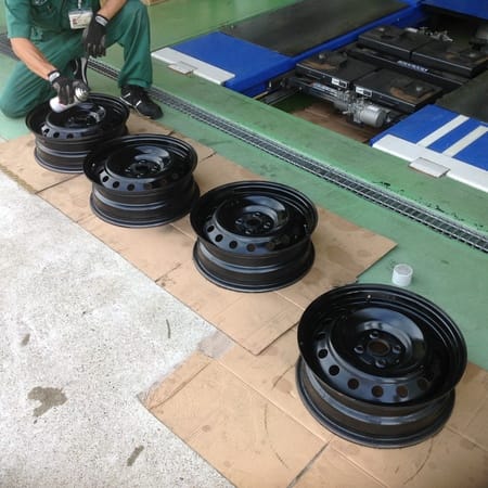 施工の手順として まずはタイヤをホイールからの外して ホイールをまずは水洗い
