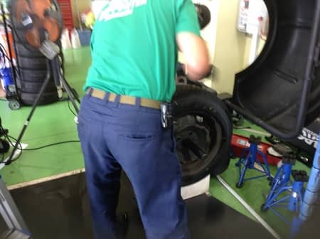 本日、ご来店されたお客様。パンクをして空気が抜けきった状態で走行してしまったようです。