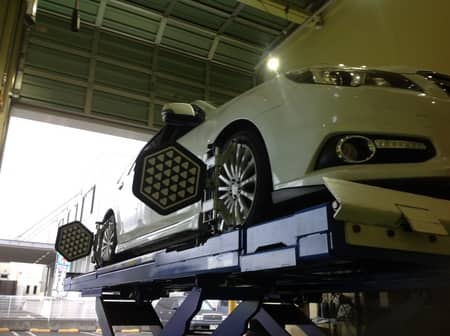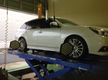 「車がまっすぐ走らない」とお電話があり、来店されてお車をアライメントテスターにか