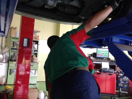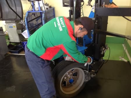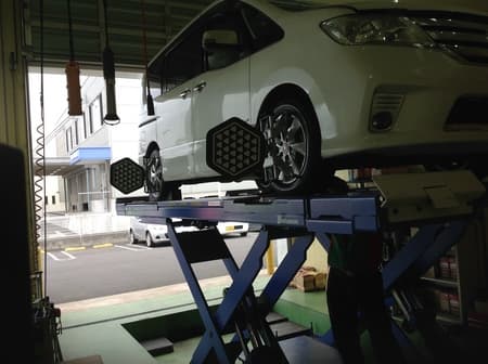 タイヤ交換は内田チーフ、アライメント調整は伊崎スタッフというグリーンピットつくば研究学園が誇るパワフルコンビでの作業です(^_^)V