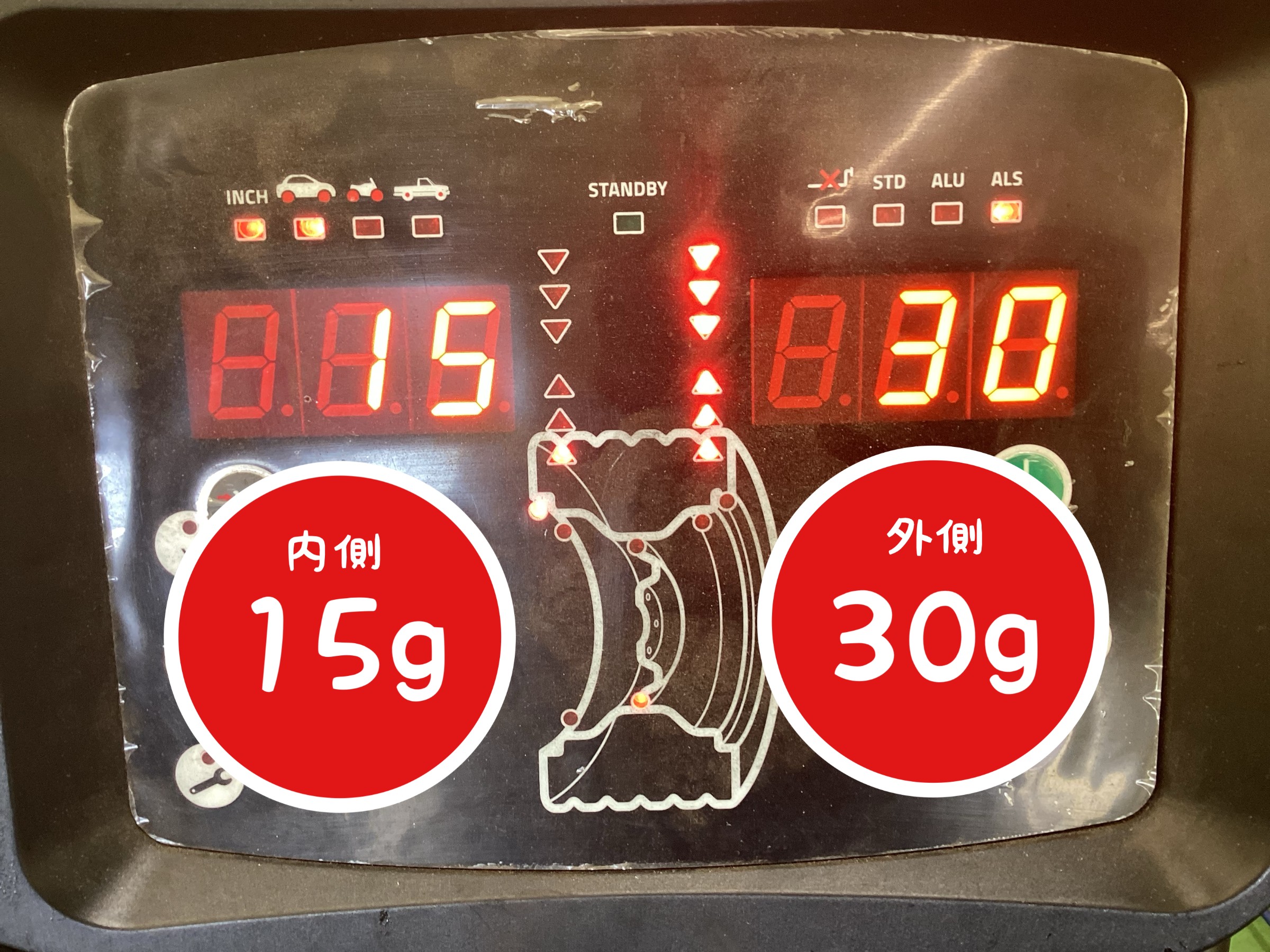 組替後は「ホイールバランス」を調整して車両へお取り付けします。