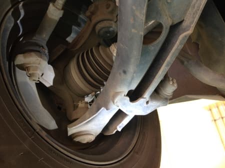 定期的に下回りを見てあげないと、いざ車検のときにドライブシャフトのブーツが破けていたり、ブッシュにヒビが入っていたり・・・