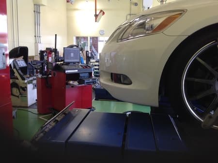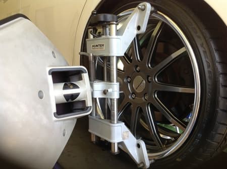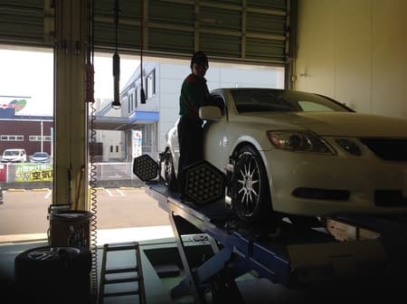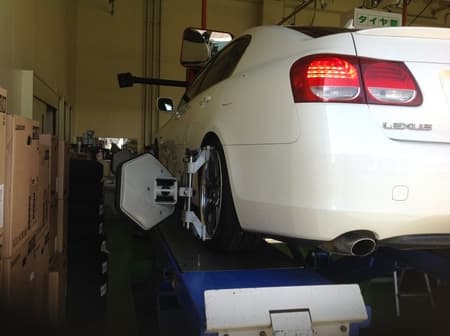 依頼を受け、ホイールを専門業者に修理していただき、幸い足廻りの変形もなかったため我らがシティハンター石塚リョウがアライメントを測定し、ホイールが歪んでしまう程のダメージを確認、調整!