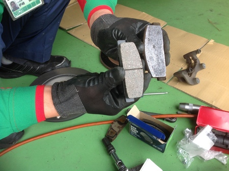 申し出がありブレーキを点検したところ、ブレーキ残量がとても少なくかつ、
