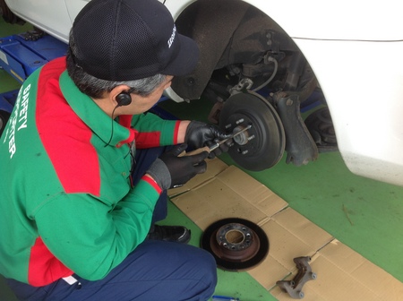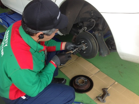 先日タイヤ履き替えでいらしたお客様より、「ブレーキかけると異音がする。」と