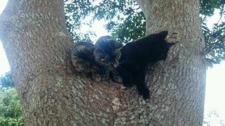もう、その辺で昼寝、ケンカ、木登り、いろいろやってます。