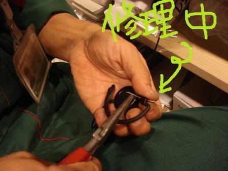 ポキッと折れてしまった部分に金具を通して補修してもらいました。