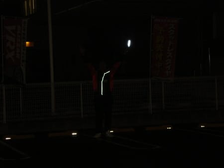 暗い中でのご来店でも、駐車場の車止めはしっかりとライトに反射しますので、