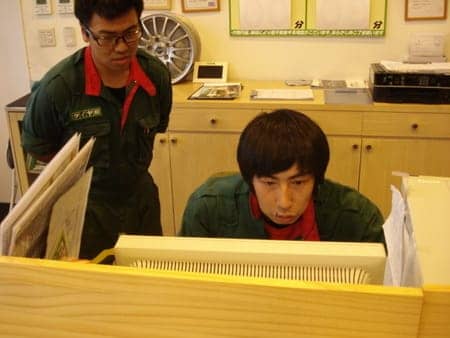 今日は当店のお仕事風景でございます!! 普段PIT作業がメインの中山スタッフが