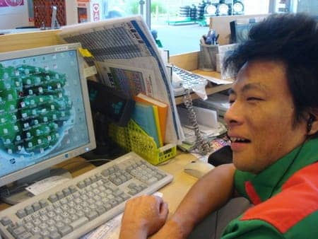 写真1枚目:デスクトップに現れたピーマンと私(柴)