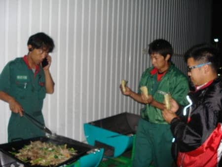 (画像2枚目)は、焼きそばの麺の投入を今か今かと待ち受ける若手2人です。