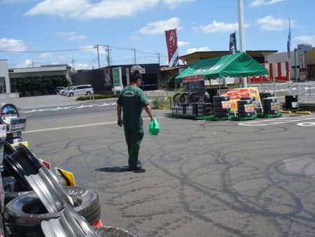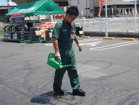 開店前に打ち水を始める店長の姿が・・・