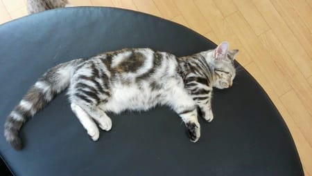 帰り際には、まだ子猫とよべる子が爆睡してたので激写させてもらいました。