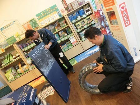 展示するタイヤには、汚れやホコリの付着を防ぐため、