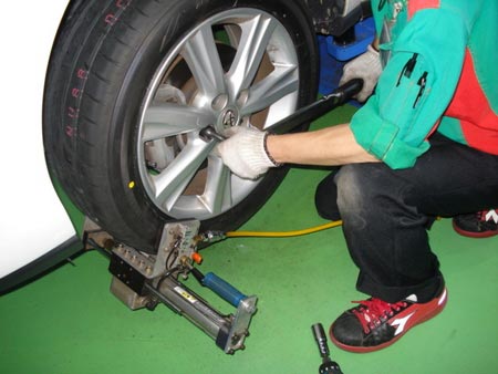 「センターフィット」サービスは、特殊振動を与えながらナットを締め付けるブリヂストン独自の技術です。
