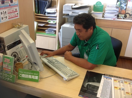 今日は店長のお仕事風景をパチリ☆ パソコンの前でお仕事中です☆