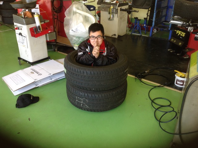なんとスタッフ菊地がタイヤの中で体育座りができてしまうではありませんか!