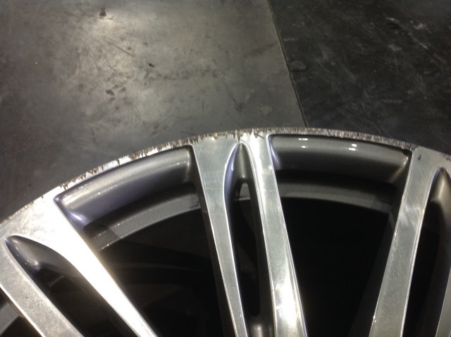 メッキ加工が美しいホイールですが、大きなガリ傷が。