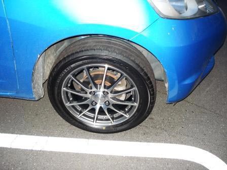 ご紹介のお車は、純正スチールホイール、14インチを装着しておりましたホンダ:フィットでございます。