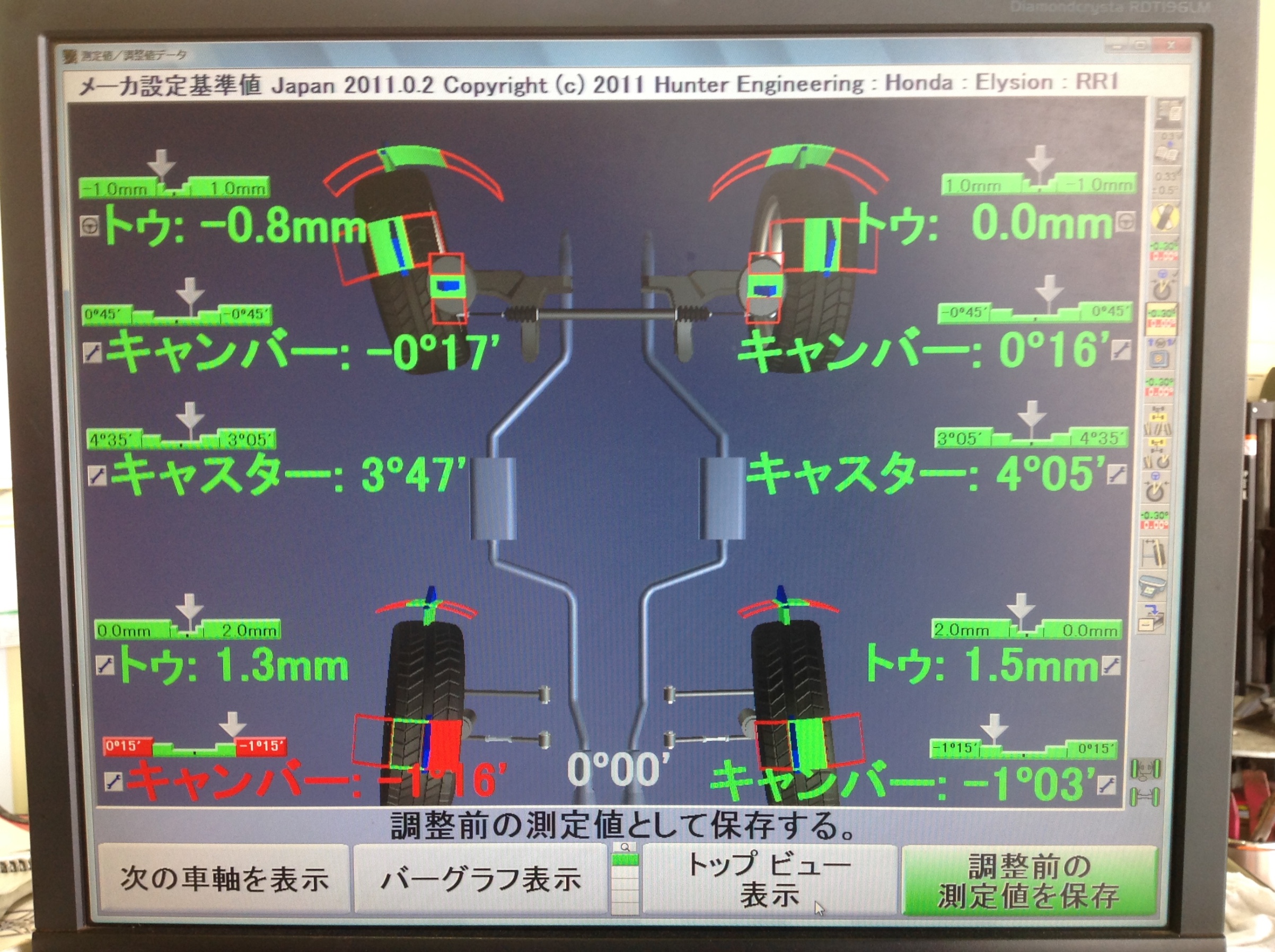 本日はホンダのエリシオンのアライメントを調整させていただきました