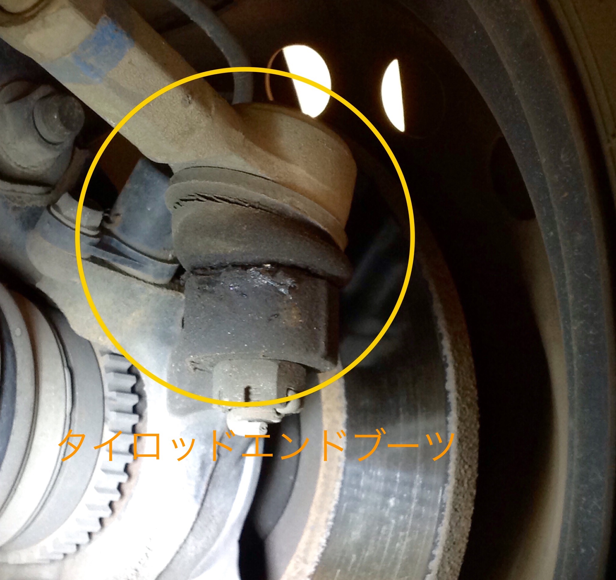 ブーツが破ける前の段階であればブーツ交換のみで修理可能ですが、破けた状態でしばらく走行していたりガタが出ている場合はタイロッドエンドごとの交換となります