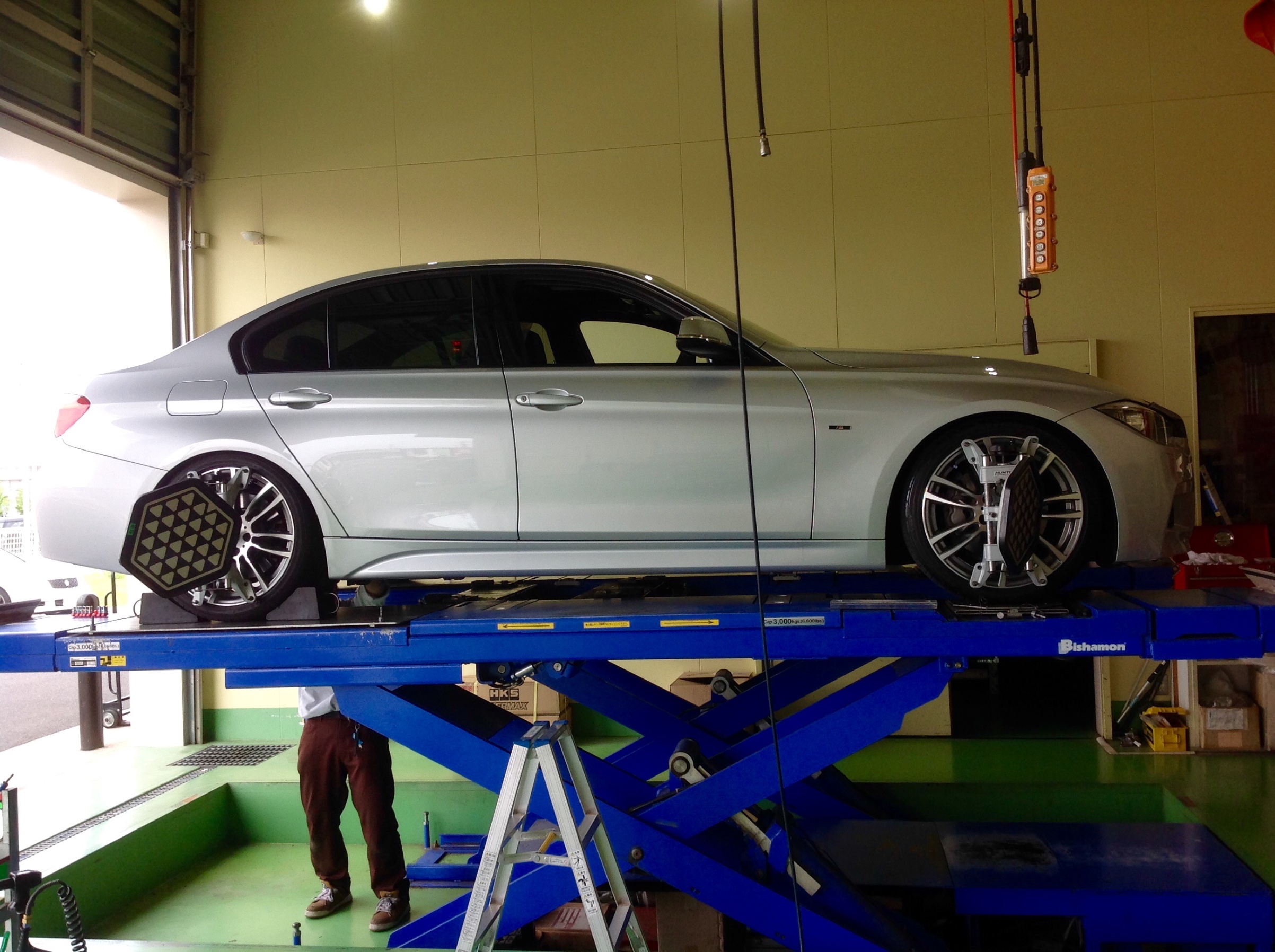 BMW 3シリーズの車高調整とアライメント調整を行いました