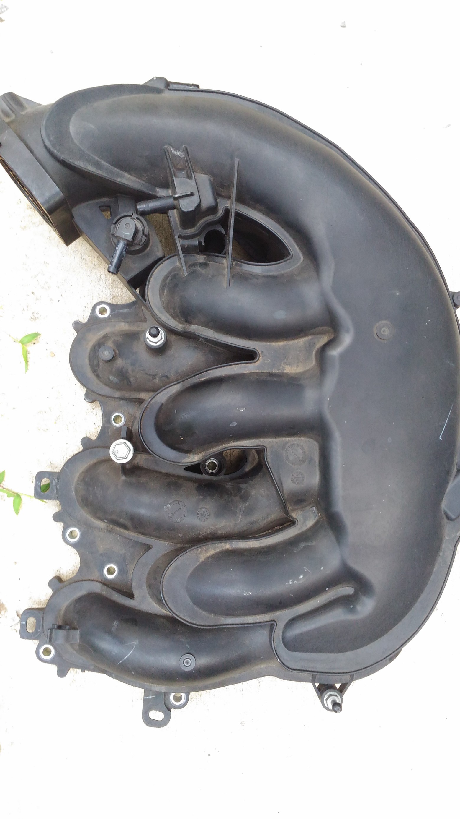 こちらはサージタンクを外している状態です。真ん中の穴が6つ開いているところがインマニで、この先にシリンダーに混合気を取り入れるバルブがいます