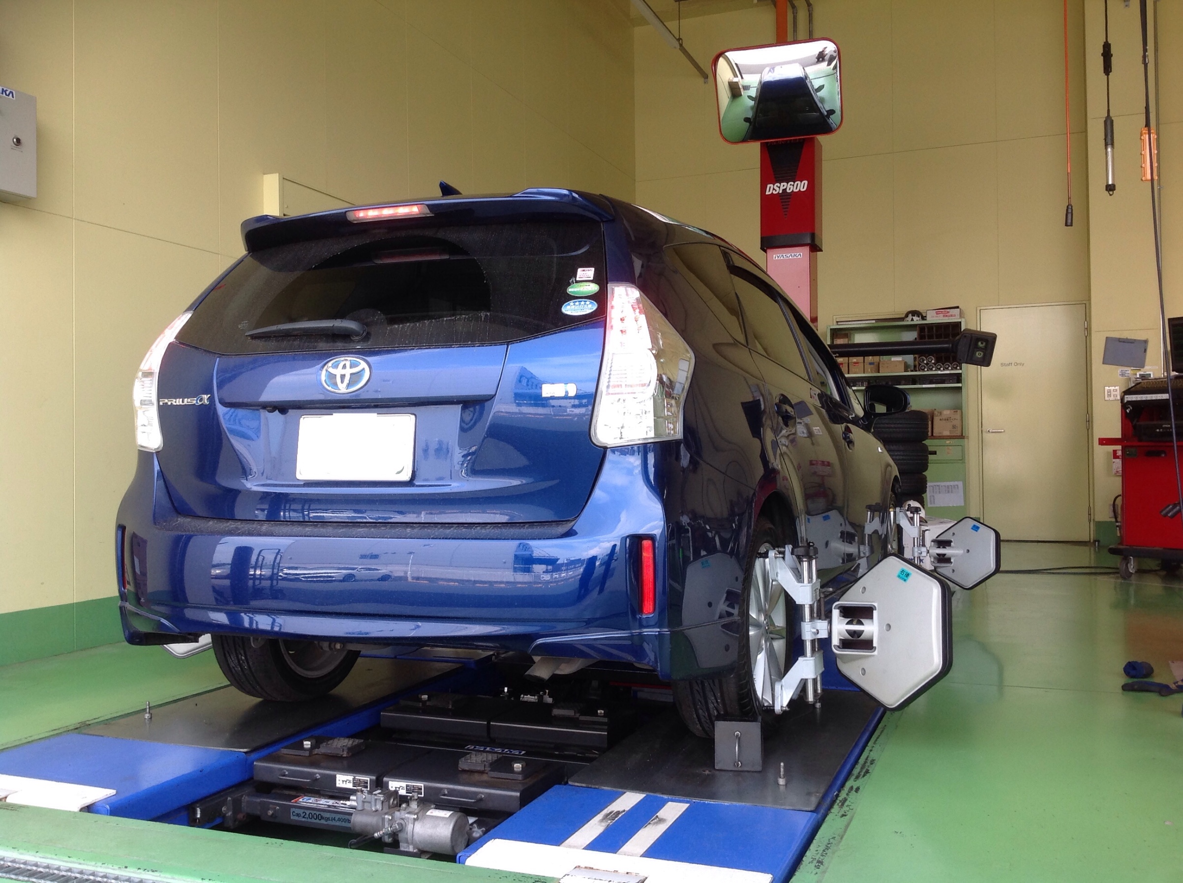 さて本日はプリウスαのタイヤ交換とアライメントを実施致しました。