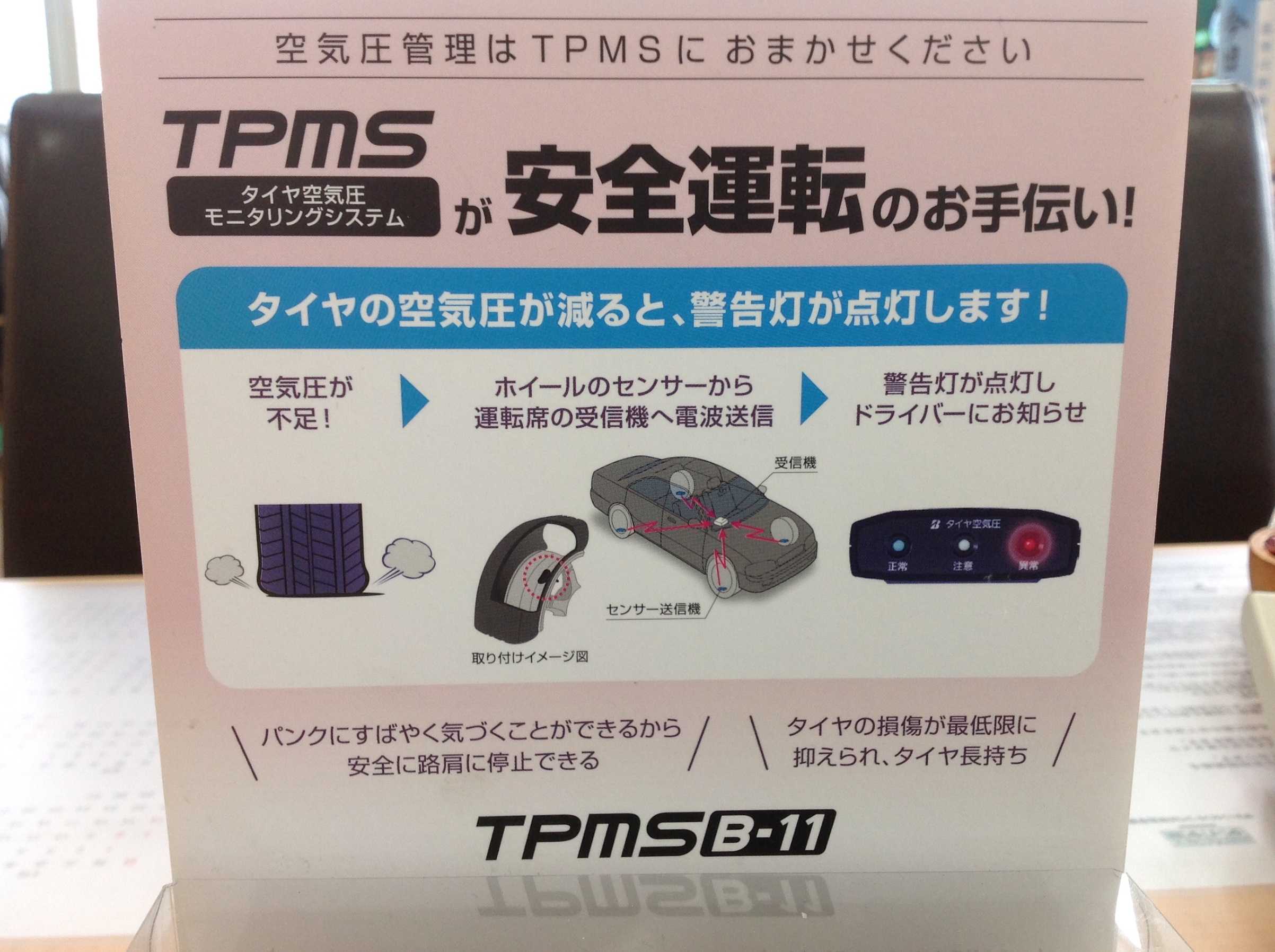 はい、TPMSです。これはですね、車内にいながら、