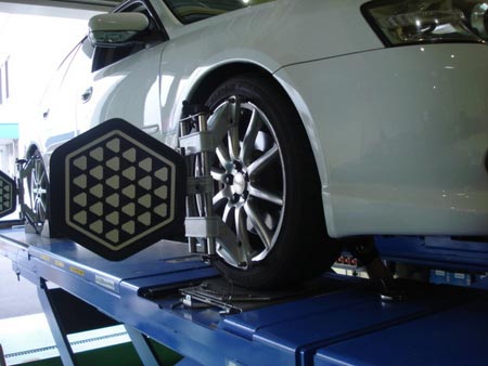 タイヤの取付け角度も、普段の運転などで少しずつ ゆがみが生じてしまいます。
